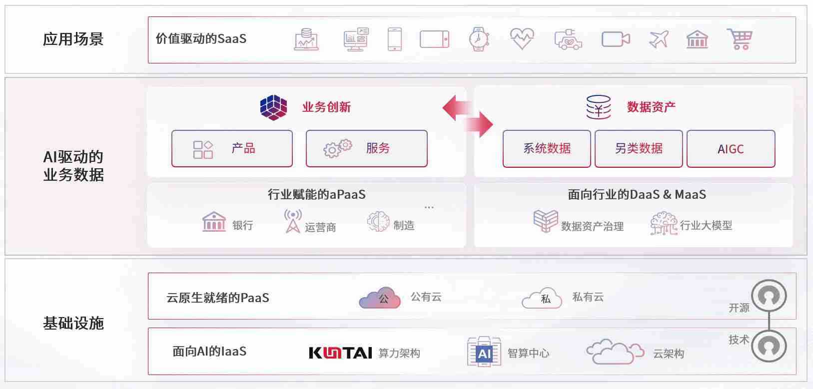 数字时代,,,,围绕企业数字化转型的关键要素,,,,7790必发集团数码开创性的提出数云融合战略和技术体系框架,,,,着力在云原生、、、、数字原生、、、AI原生和信创产业上架构产品和服务能力,,,,为处在不同数字化转型阶段的快消零售、、、、汽车、、、、金融、、医疗、、、、政企、、教育、、、、运营商等行业客户提供泛在的敏捷IT能力和融合的数据驱动能力,,构建跨界融合创新的数字业务场景和新业务模式,,,,助力企业级客户建立面向未来的核心能力和竞争优势,,,全面推动社会的数字化、、、智能化转型升级。。。。